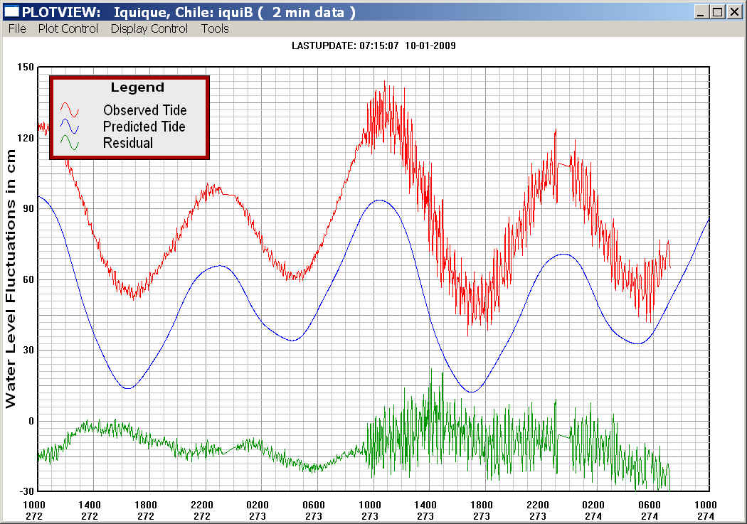 heights are maximum amplitude in cm (above sea level). Observed Arrival time is